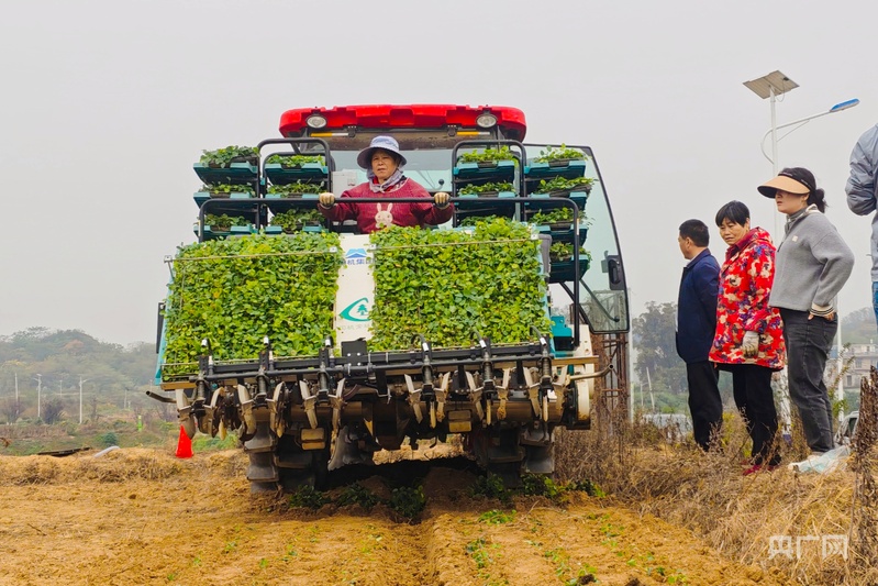 央广网南昌11月6日消息(记者胡斐 实习记者巫艳萍)眼下,正值秋冬种的关键时节,在江西省九江市湖口县均桥镇农业科技示范园,油菜移栽工作正在紧锣密鼓展开。伴随着轰鸣声,农机同时完成了耕地、开沟、施肥、栽苗、浇水“一条龙”作业,一株株嫩绿的油菜苗被整齐地植入土中,成行成列。这是国内首台“油菜毡状苗精准施肥移栽机”机械施肥技术示范现场会的现场,吸引了周边不少种植大户专程赶来,现场氛围热烈。