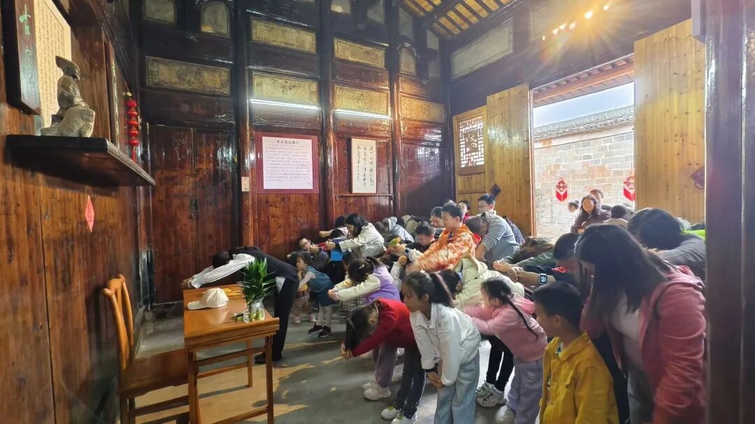 “端身正意,肃整衣冠,以至诚,尊敬,感恩的心,向百世大儒陆九渊行礼。”在槐堂书院,金溪县象山研究中心会长陆小春带领众学生举行了恭拜先贤陆九渊的仪式,共同诵读了陆氏家训,让参与者跨越时空,沉浸式感受千年家风文化的深厚底蕴。