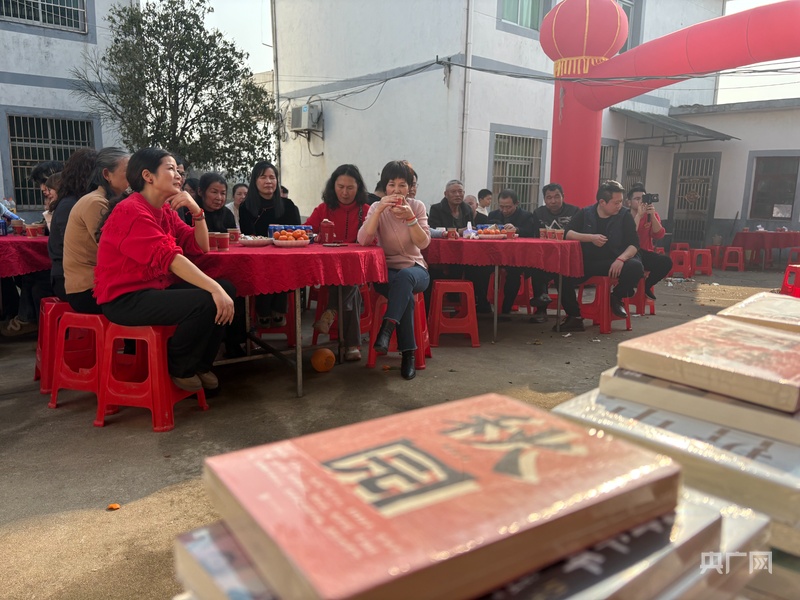 2月22日大年初六,在南昌县向塘镇璜溪村徐家自然村,一场别具一格的大家庭新春团圆会正在这里举行。和其他家庭新春团圆会不同的是,这里除了美食和春联外,还有一摞摞摆放整齐的书籍。