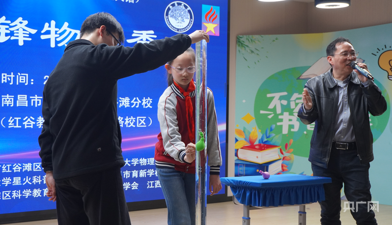 央广网南昌4月3日消息(记者郇康新)4月2日,南昌大学星火科普志愿服务队走进南昌市育新学校红谷滩分校,将专业的天文知识与有趣的物理实验带到同学们身边,为200余名学生带来了一场别开生面的科普盛宴。此次活动以科普讲座搭配物理实验秀的形式,让孩子们近距离感受科学的神奇与魅力,在心中播撒下热爱科学、探索未知的种子。