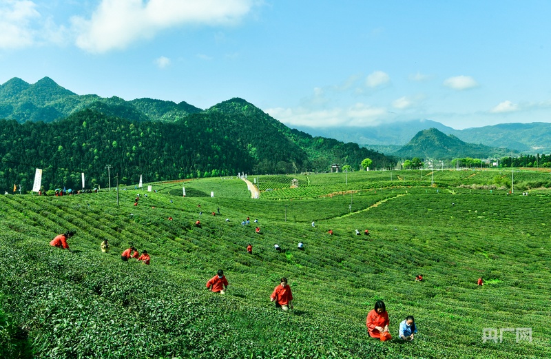 幕阜山下,万亩茶园绿浪翻滚(央广网发 梁振其 摄)