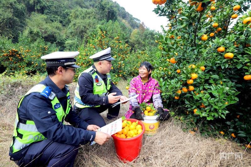 民辅警向果农普及安全出行注意事项(央广网发 黄小军 摄)