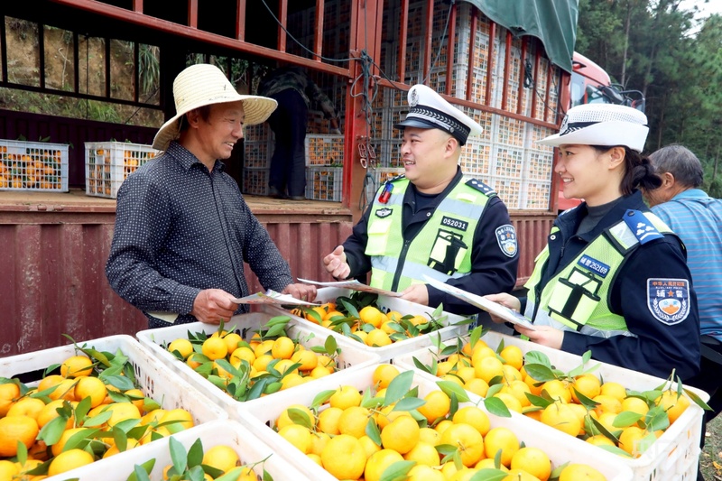 央广网新余11月15日消息(记者周蓓 通讯员黄小军)当前正值蜜桔丰收采摘季,果园务工务农人员流动大,农用车、电动三轮车使用频繁,交通安全风险升高。为进一步保障丰收农忙时节的道路交通安全,提高群众交通安全意识和法治意识,连日来,江西省新余市分宜县公安局交管大队组织民辅警走进辖区果园基地开展“护丰收 话安全”主题普法宣传活动,为果农的“丰收路”筑牢安全屏障。