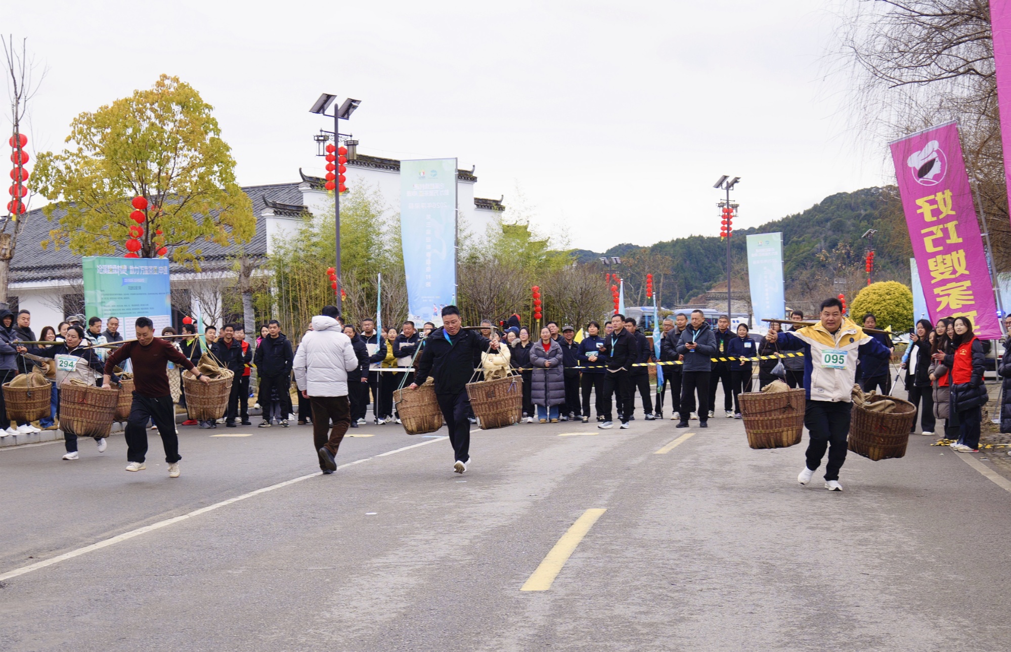 “村跑”不仅是一场体育盛会,也是一次乡村振兴成果的集中展示。赛事期间,汇聚了30余家本地农户、合作社与企业,涵盖传统村落文化展示区、非遗文化展区、浮梁县名优特农产品展区,吸引了大量跑者与游客驻足选购;而文体赛事则通过茶道挑运比赛,呈现了一场精彩绝伦的民俗文化表演,不仅展现了挑运技艺的传承,更传递出浮梁人民勤劳坚韧的精神风貌。