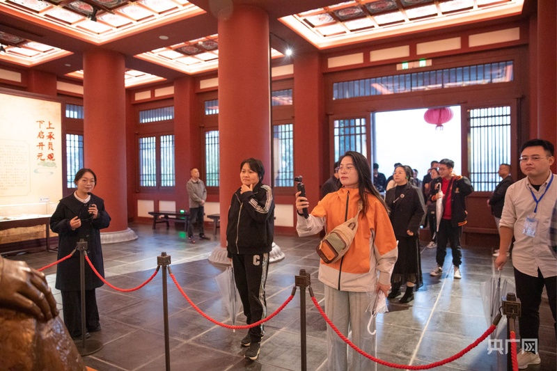 采风团参观狄公楼(央广网记者胡斐 摄)