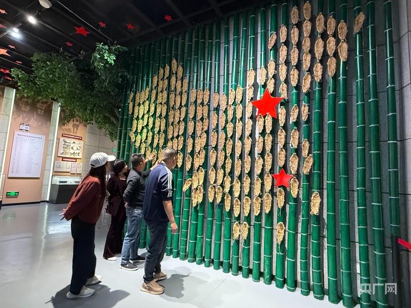 中央红军长征出发纪念馆内,由80多双草鞋组成的草鞋墙(央广网记者 周蓓 摄)