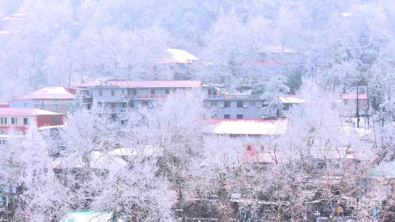 央广网九江1月8日消息(记者郇康新)近日,江西庐山迎来一次降温、雨夹雪天气过程,待到云雾漫过山间,牯岭雾凇终现真容。只见山脊山岭皆被浓雾染白,苍翠山林化身为雨凇雾凇,凇花迎风绽放、冰晶含翠欲滴,玉树琼花绽放山城,呈现出一派“千崖冰玉里,万峰水晶中”的南国冬韵。