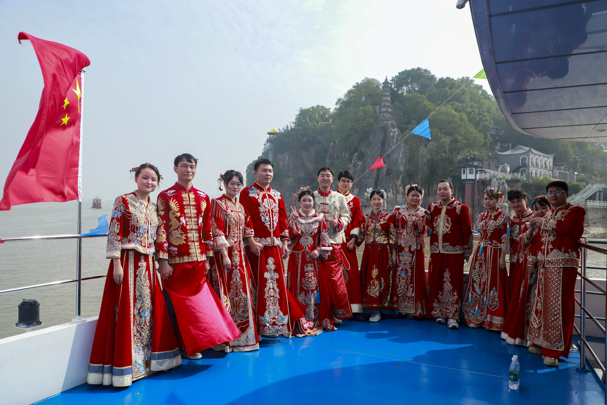 仪式结束,一对对新人手牵着手前往石钟山景区,乘船沉浸式观“江湖两色”奇观,品长江的热烈奔放和鄱阳湖的含蓄包容,赏江豚逐浪的灵动生态美景,悟夫妻双双甜蜜奋斗的人生真谛。