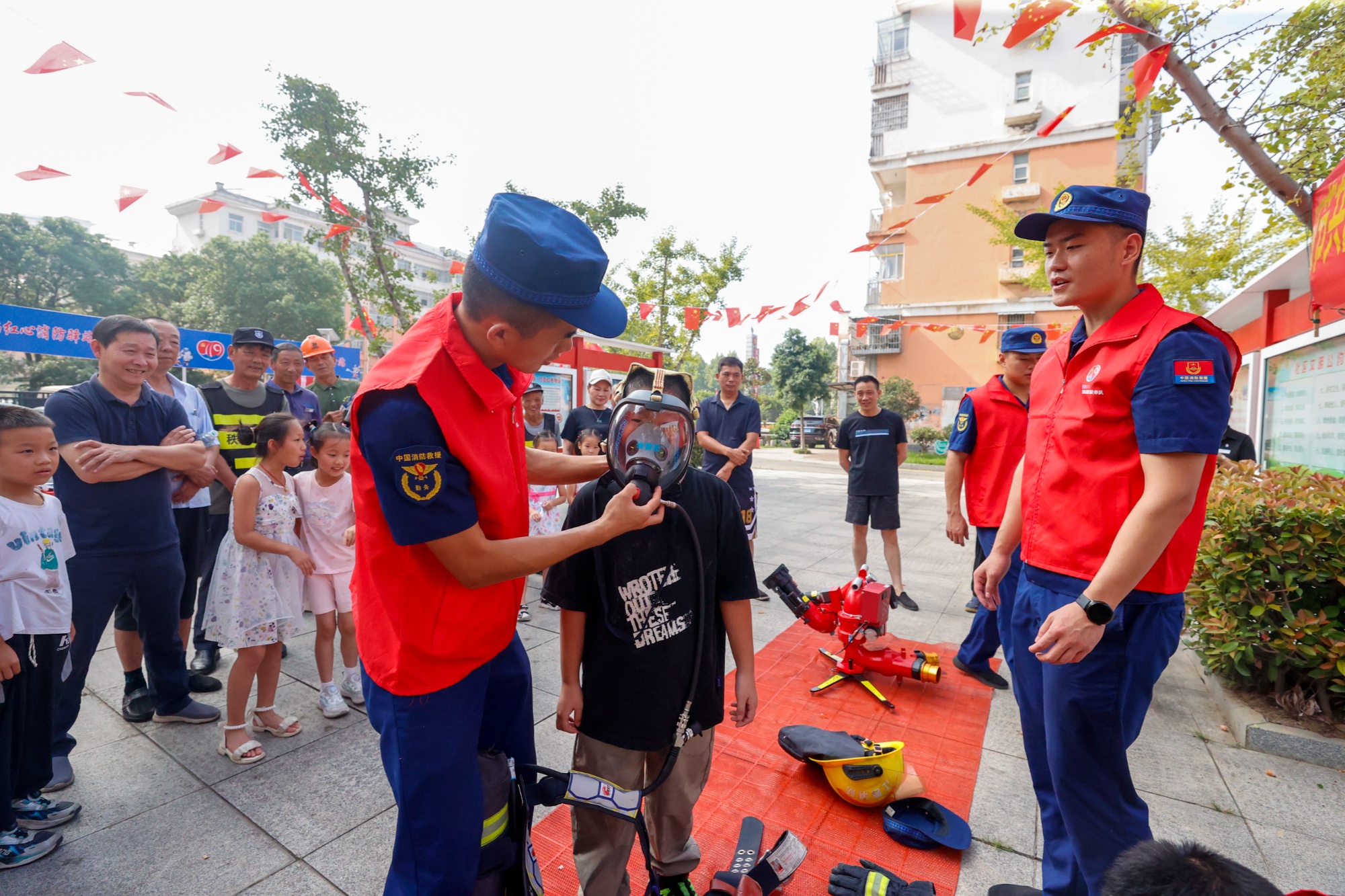 活动还设置了互动体验环节。消防员现场演示灭火器材使用方法,并邀请居民实际操作。专业救援装备展示吸引众多居民围观,不少小朋友穿上消防服、戴上消防头盔,体验“小小消防员”。这种“零距离”接触让消防安全知识更加生动具体。