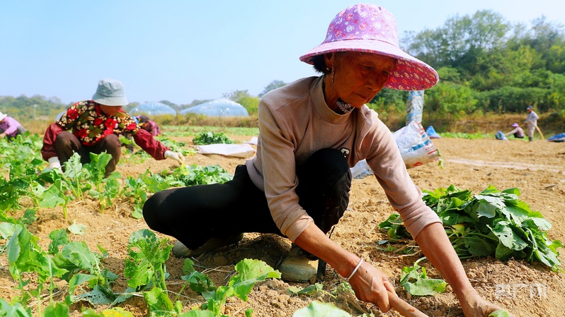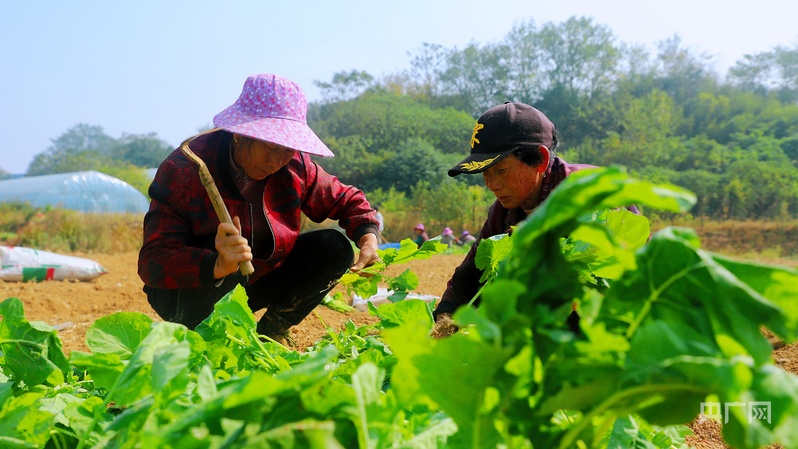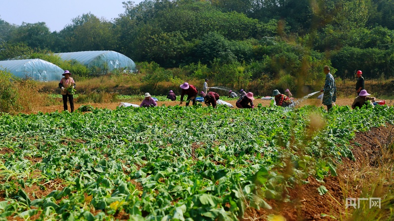 村民正移栽油菜秧苗(央广网发 刘可 摄)