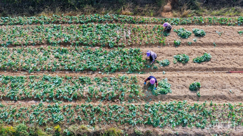 “每天有20到30名村民务工,日收入约80元。”基地负责人刘勇军介绍,基地严格把控栽种标准,每亩栽种1.5万至1.6万株,行距15公分,并及时洒水保墒。