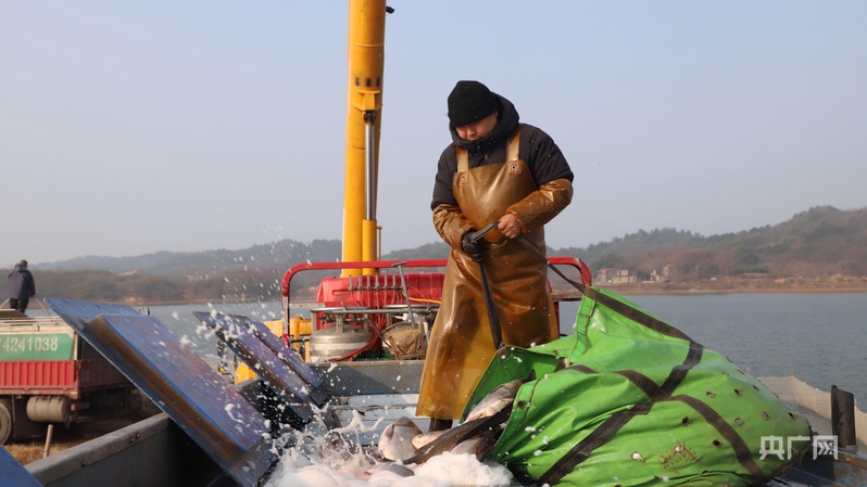 冬捕现场,鱼儿翻腾满网丰收(央广网发 王林华 摄)