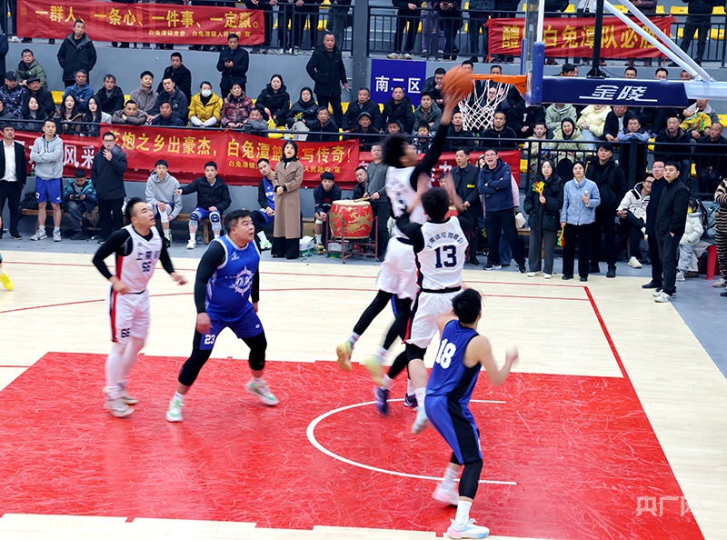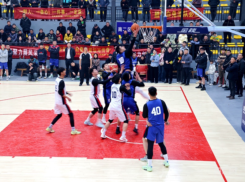 决赛现场,双方球员展现出良好的竞技状态。远投三分、快速突破、防守反击等精彩场面不断,攻防转换迅速,团队配合默契。比赛前三节,双方比分持续紧咬,战况胶着。进入第四节后,白兔潭镇代表队把握住机会,通过连续打出高效反击逐渐拉开分差,并最终将领先优势保持到终场。