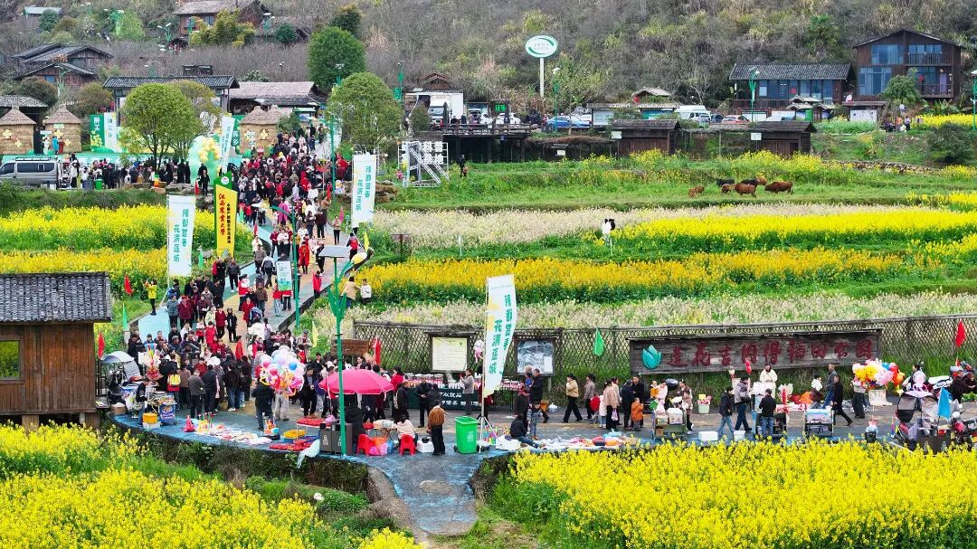 阳春三月,金浪翻涌。近日,“辣都赏春·花满莲城”油菜花文化旅游促消费活动在江西萍乡莲花县吉内得国家稻田公园盛大启幕。万亩油菜花竞相绽放,与青山、村落、稻田相映成画,吸引八方游客踏春而来,以花为媒、以旅兴商、以农促融,点燃春日文旅消费热潮。